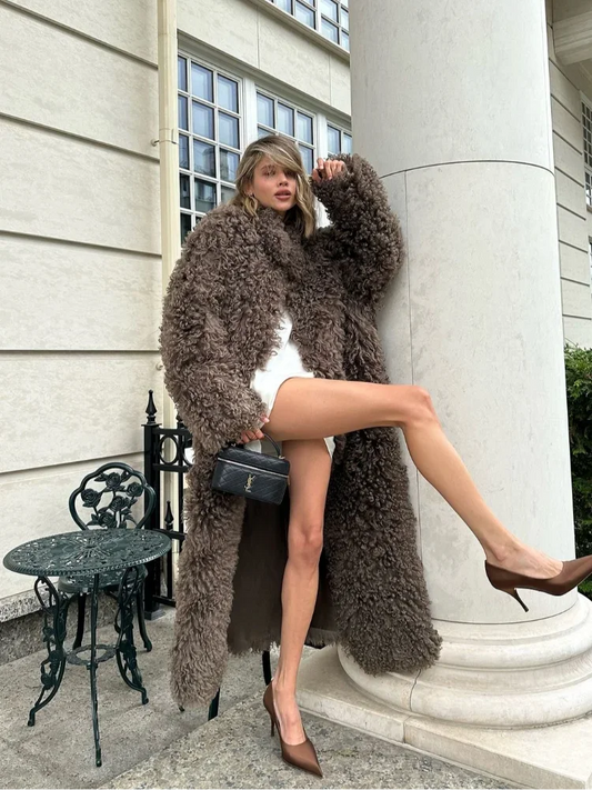 Luxury Long Faux Fur Coat Women Fashion Lapel Long Sleeve Thick Warm Loose Jacket 2025 Winter Lady Chic High Street Outerwear