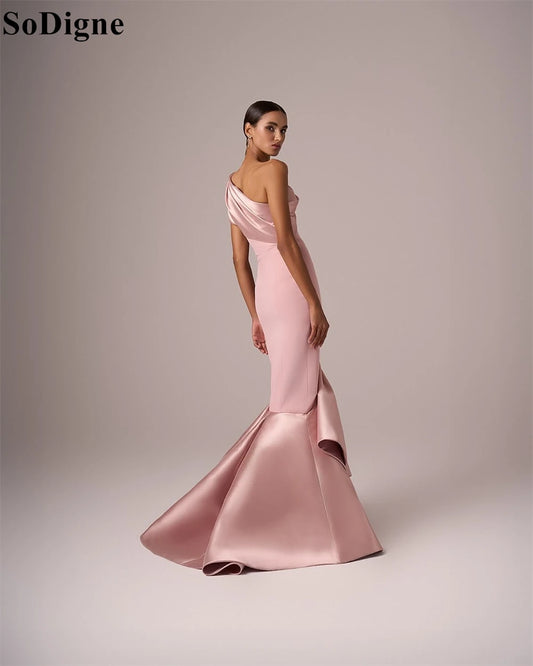 SoDigne Elegant Pink Satin Evening Dresses Mermaid One Shoulder Backless Draped Party Dress 2025 Charming Prom Gowns Customized