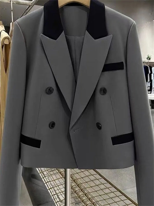 Loose Short Blazer Woman Crop Coats for Women Colorblock Gray Spring Autumn Jacket Korean Fashion Outdoor Sale Fall Outerwears