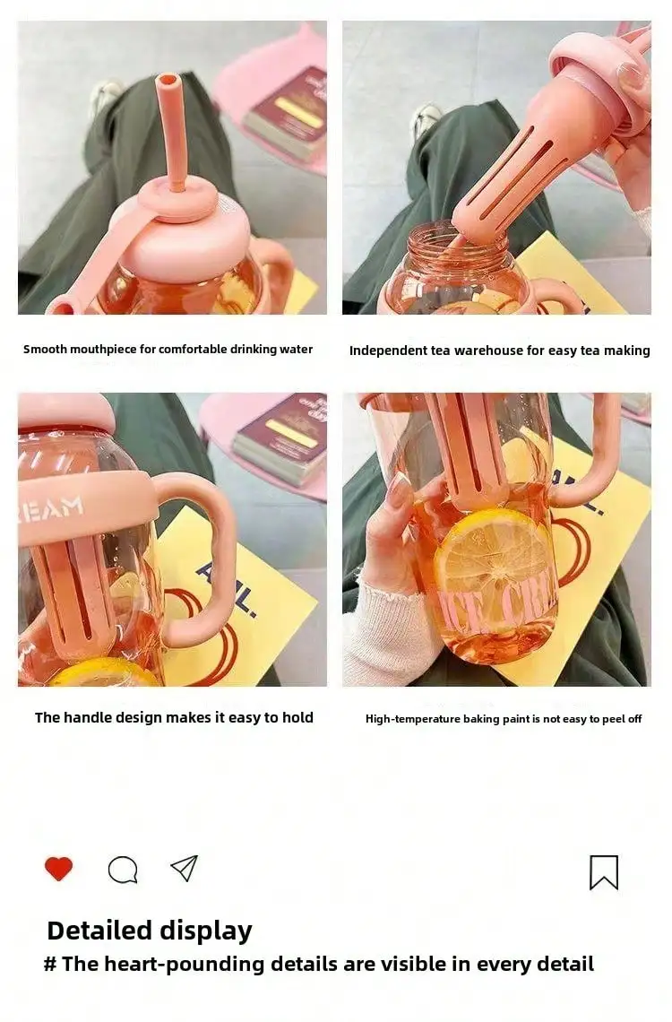 1 Pc Stylish Large-Capacity Sports Water Bottle with Straw, Portable & Heat-Resistant Plastic Cup for Women