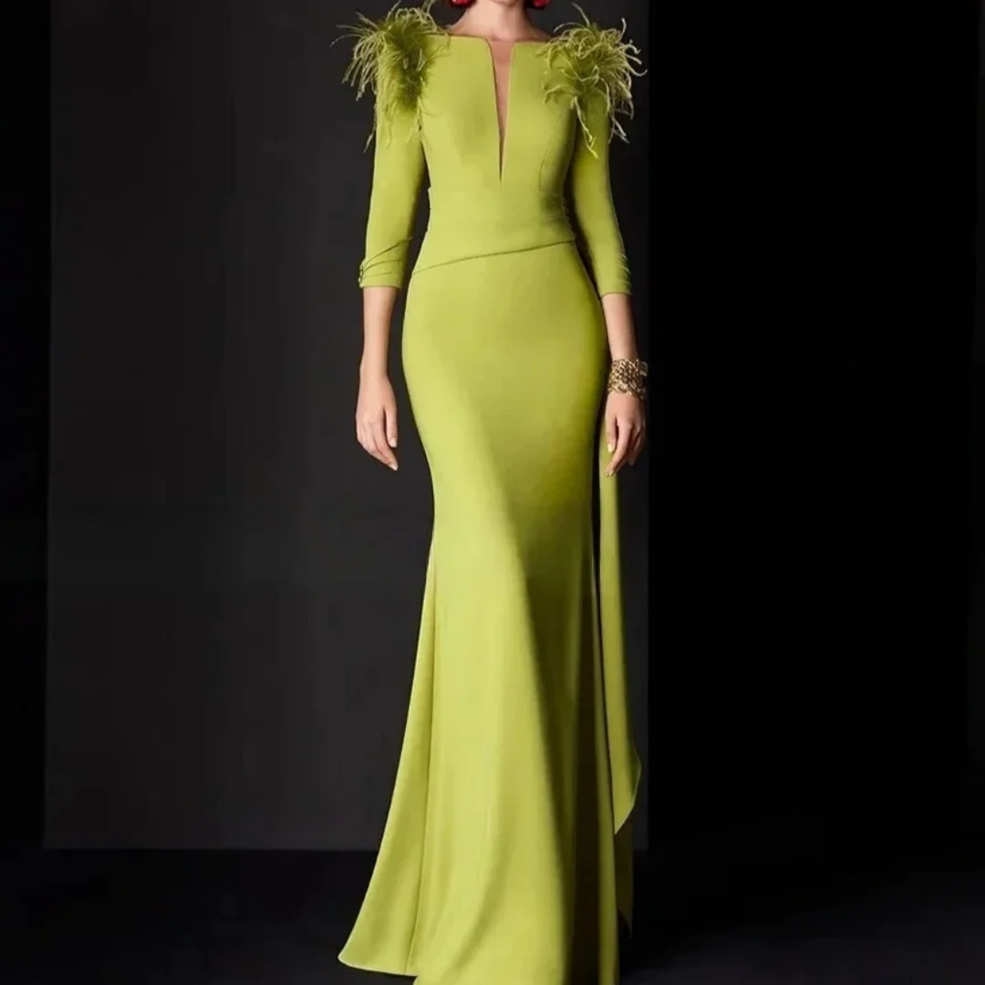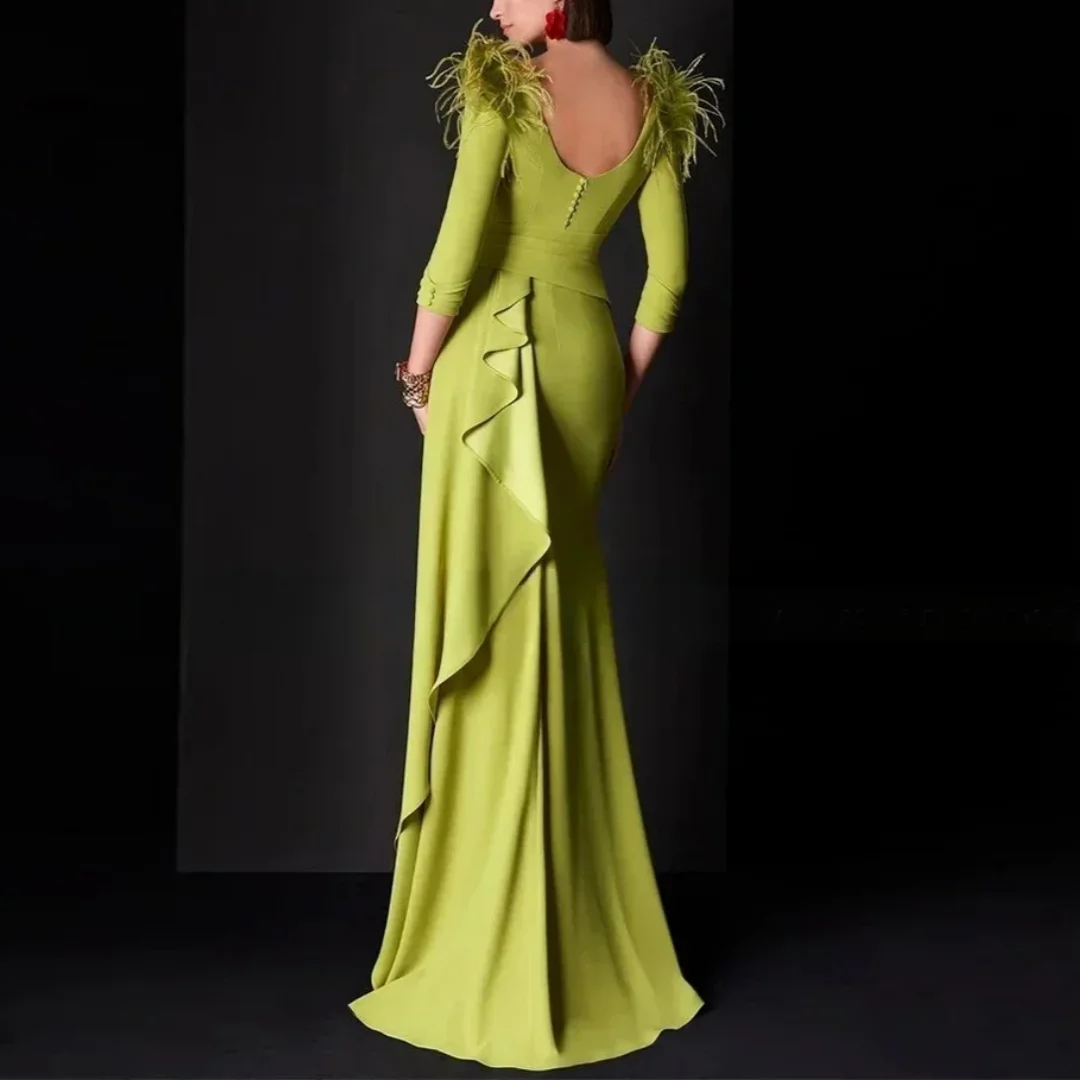 To fit high heels, we'll add an extra 2 inch (ca. 5cm) onto custom-sized floor-length dresses and dresses with trains
