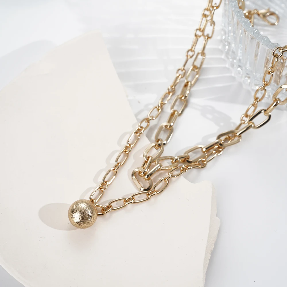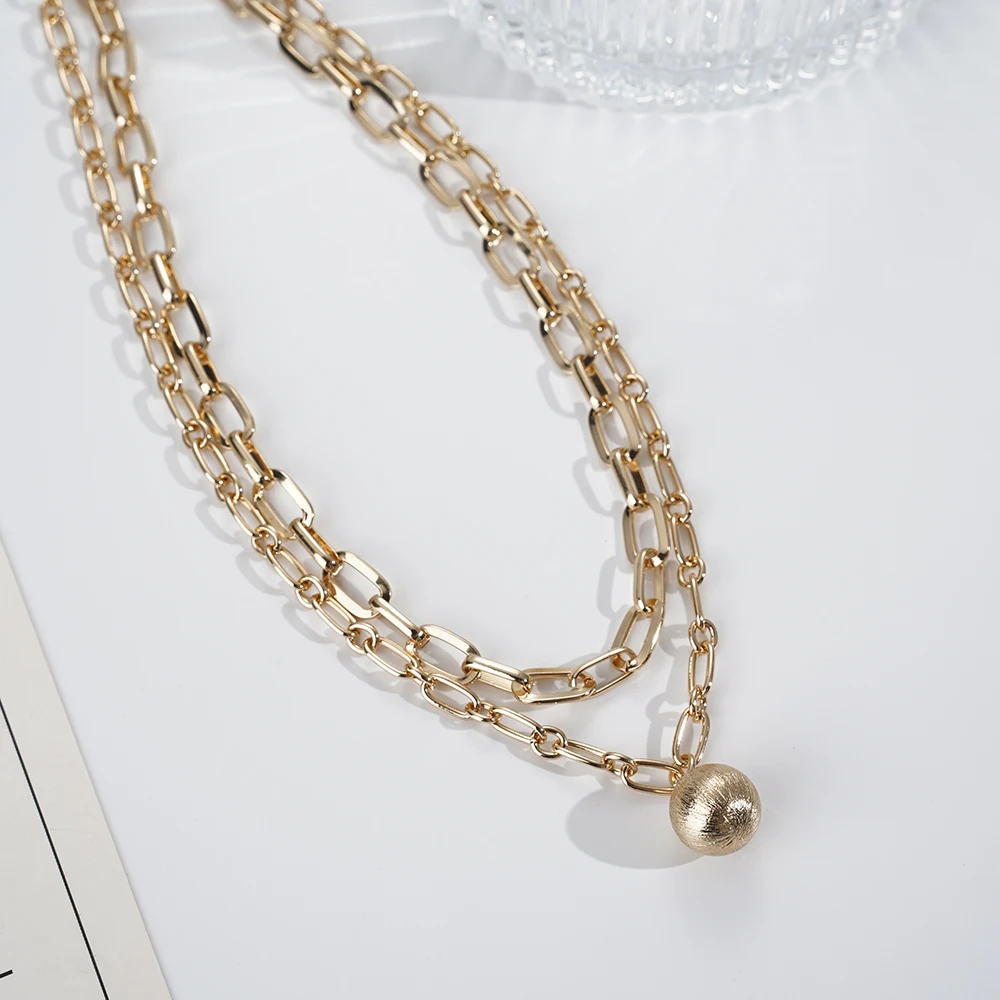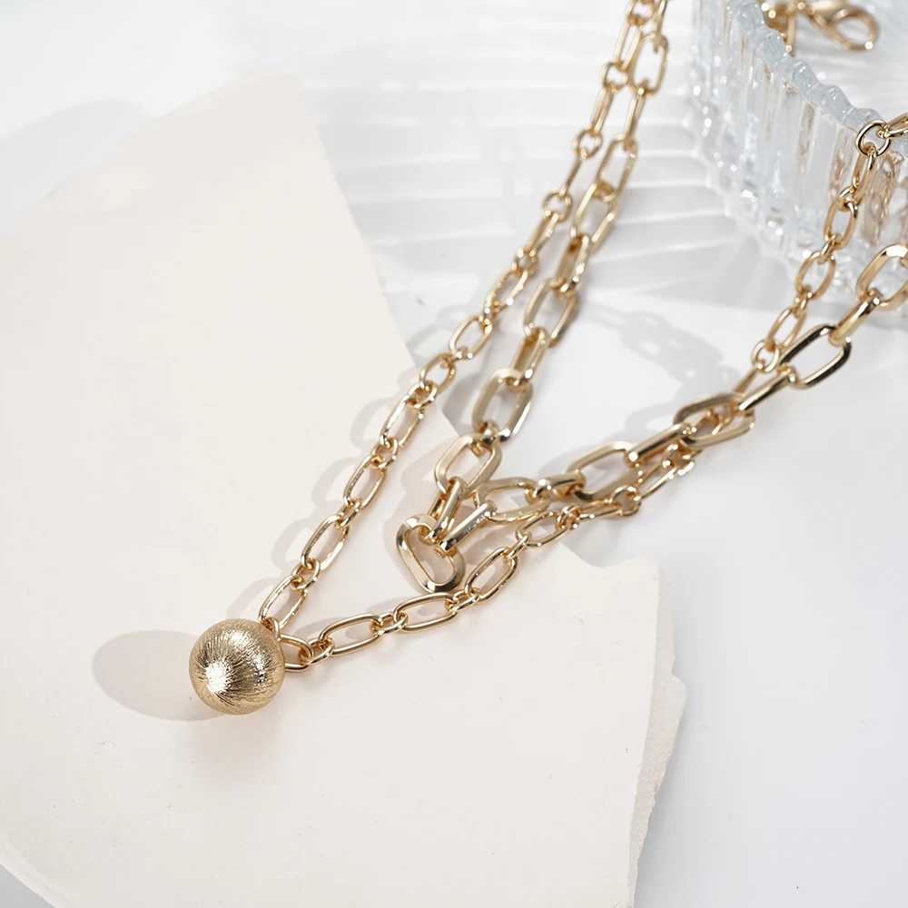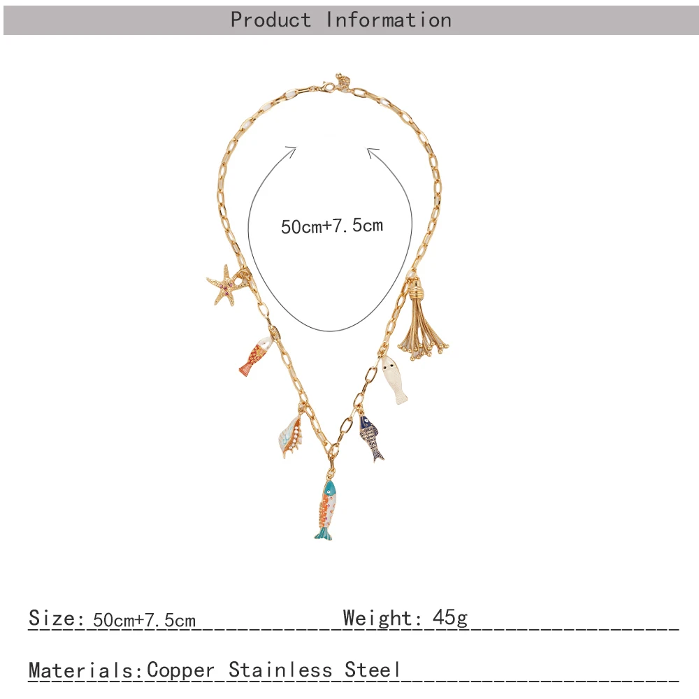 Fish Necklace For Women Bohemian Fashion Ethnic Hawaiian Beach Jewelry With Round Ball Pendant Double Gold Chain