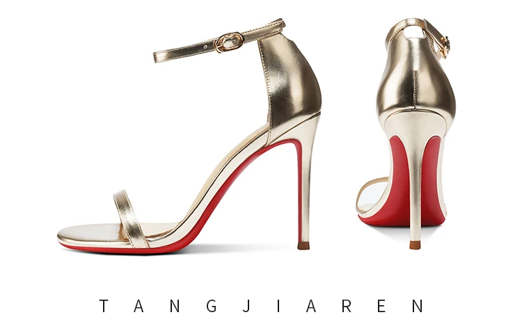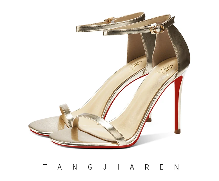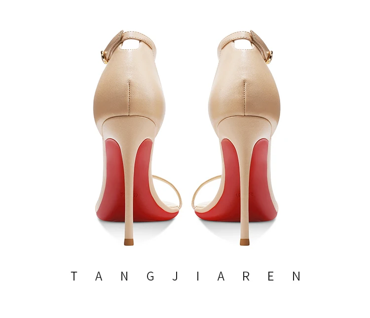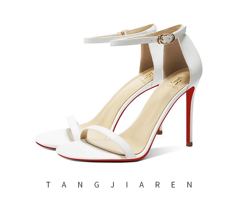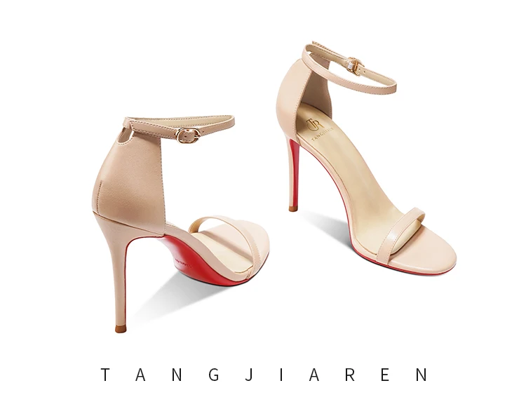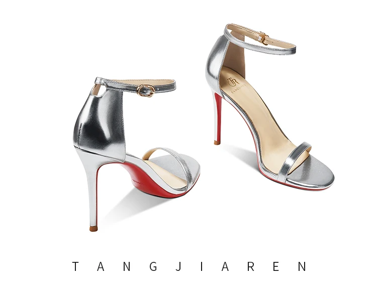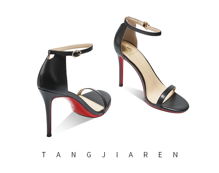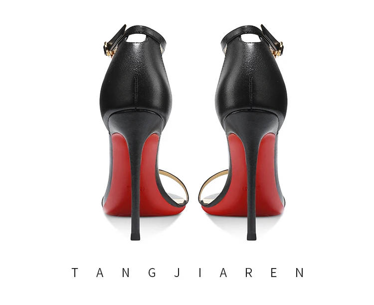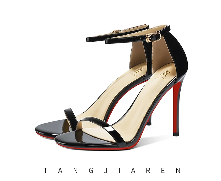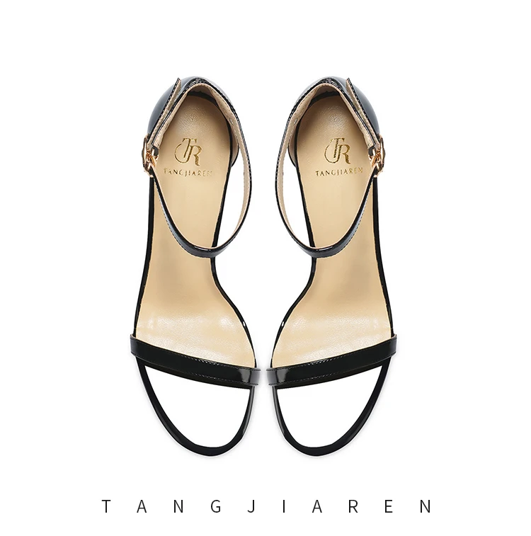 High heeled sandals for women in the summer of 2025, fashionable black, sexy, slim heel, straight buckle high-heeled shoes