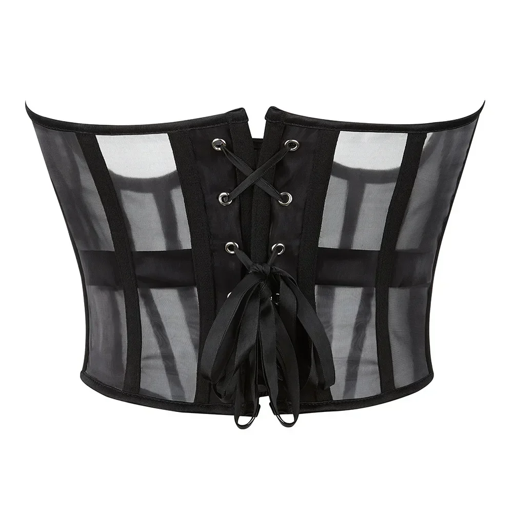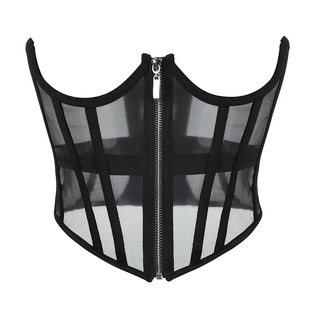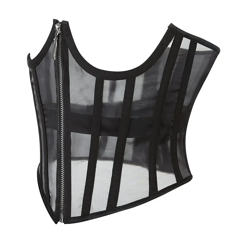 Ladies Transparent Mesh Corset Waist Training Bustier With Zipper Sexy Shaper Night Club Sweet Cropped Top
