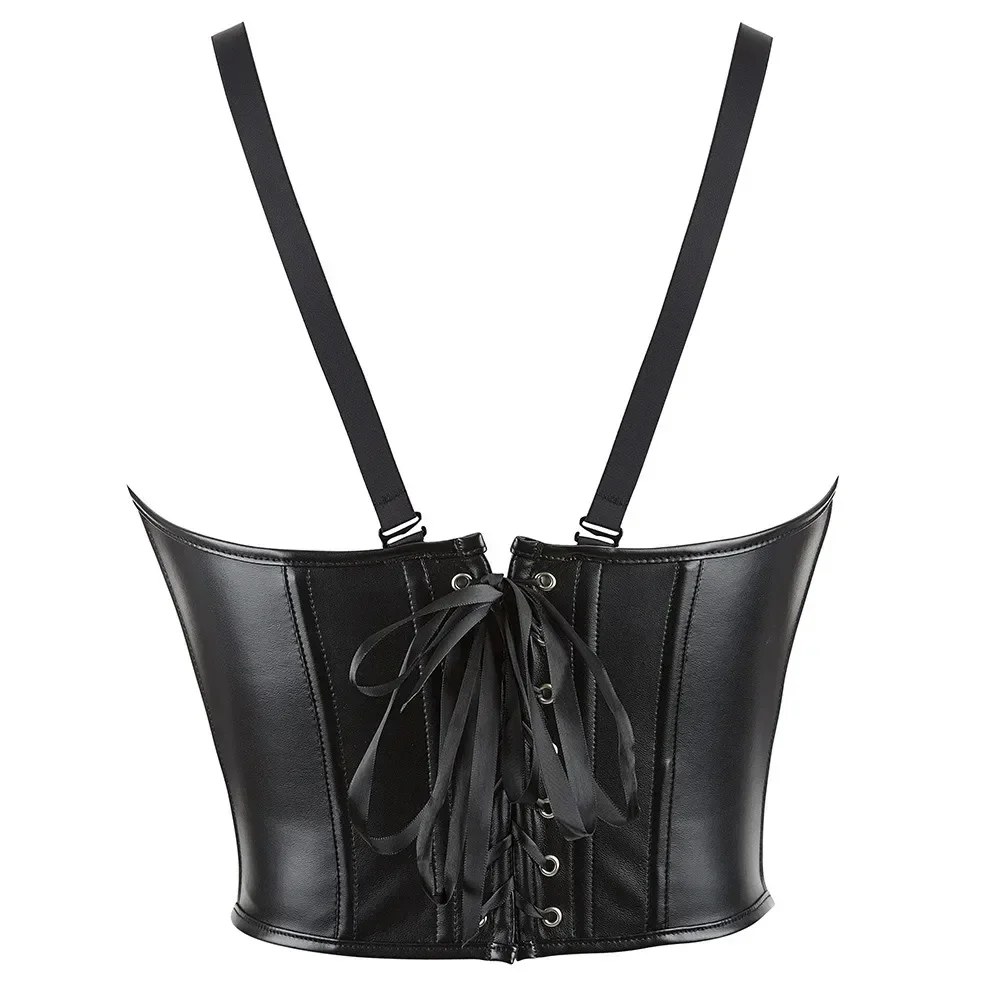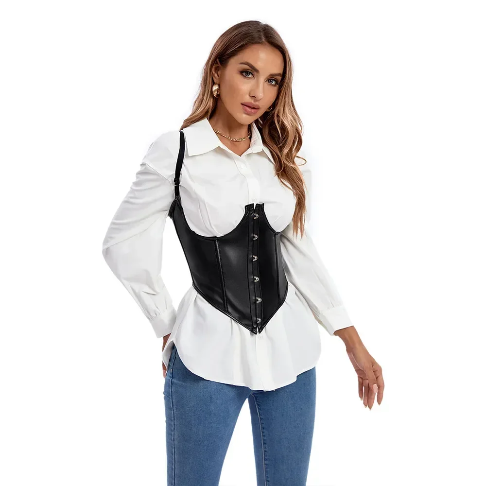 Leather Underbust Corset Top with Straps Sexy Women's Waist Cincher Corselet Vest Lace Up Gothic Punk Corsets Bustiers Plus Size