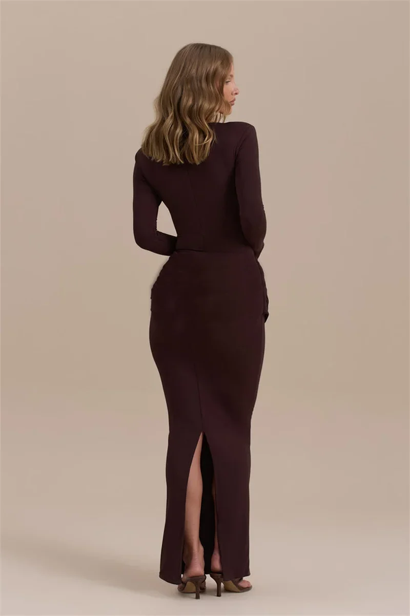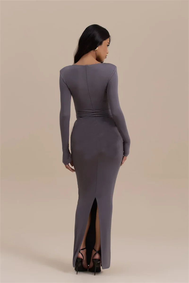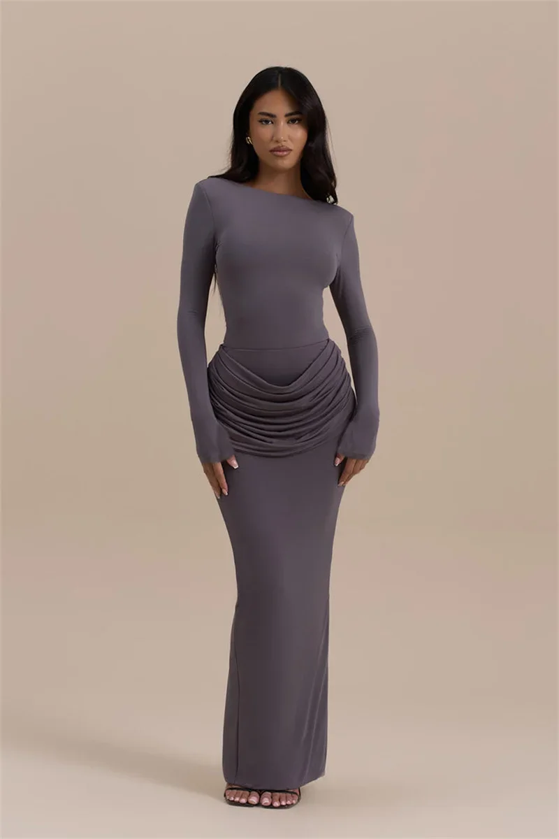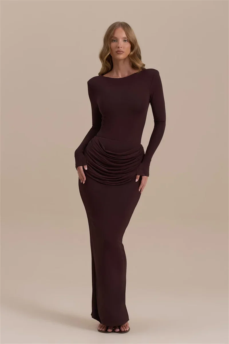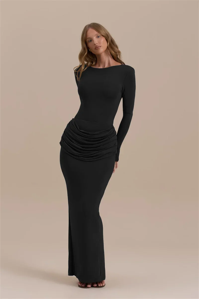 Long Sleeve Ruched Sexy Maxi Dress For Women Gown Autumn Winter New O Neck High Waist Bodycon Club Party Long Dresses