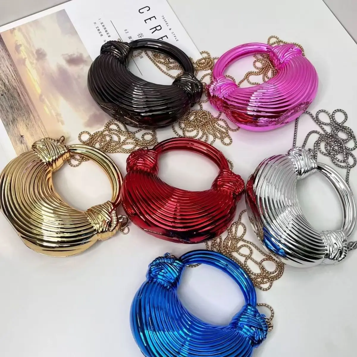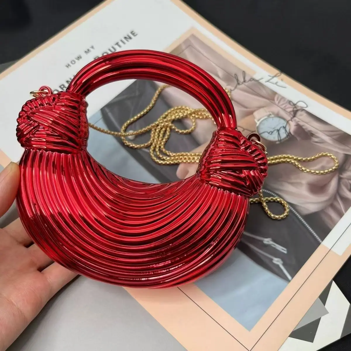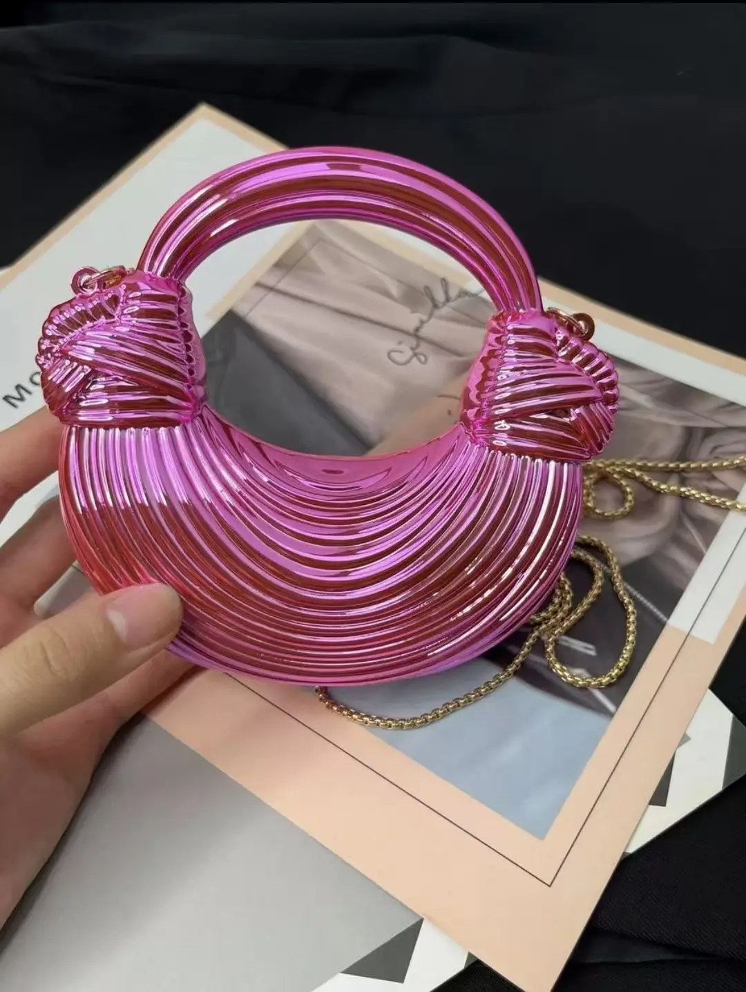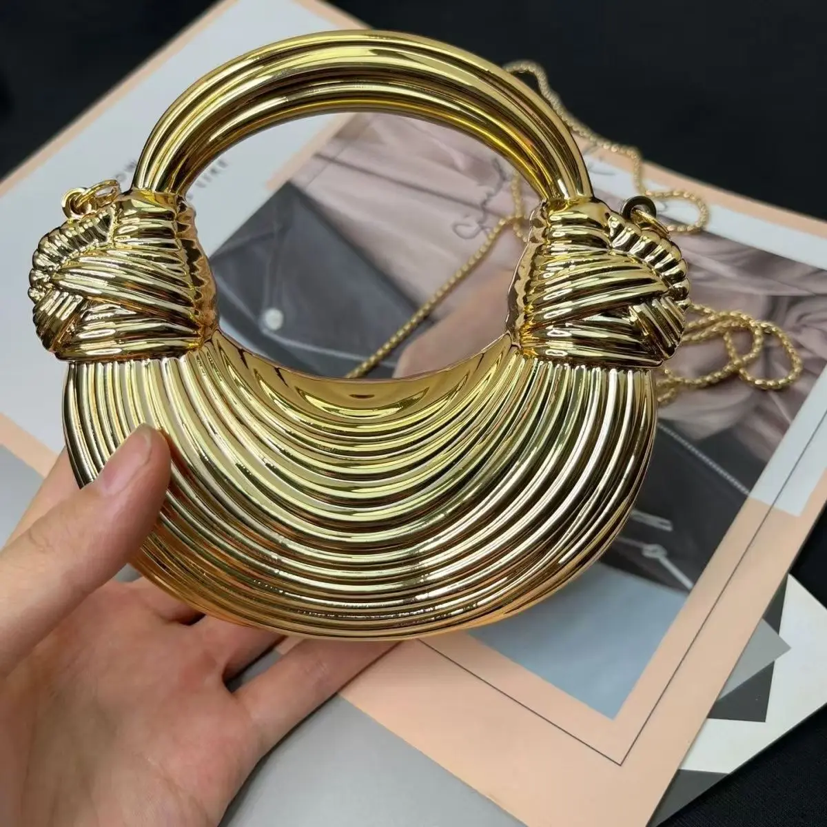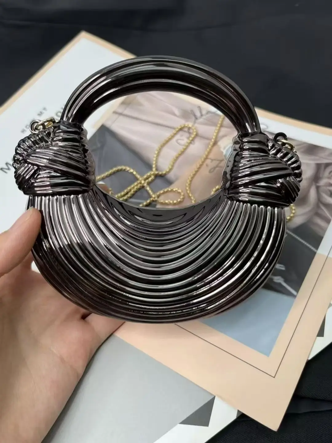 Mini Golden Evening Bag Purses and Handbags Luxury Designer Shoulder Bags Knot Noodle Party Wedding Acrylic Shiny Clutch Purse