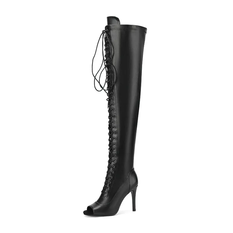Over the knee Long Boots Women Heels Soft Lace-up Boots Stilettos Jazz Dance Latin Dancing Outdoor Sexy Stilettos Booties