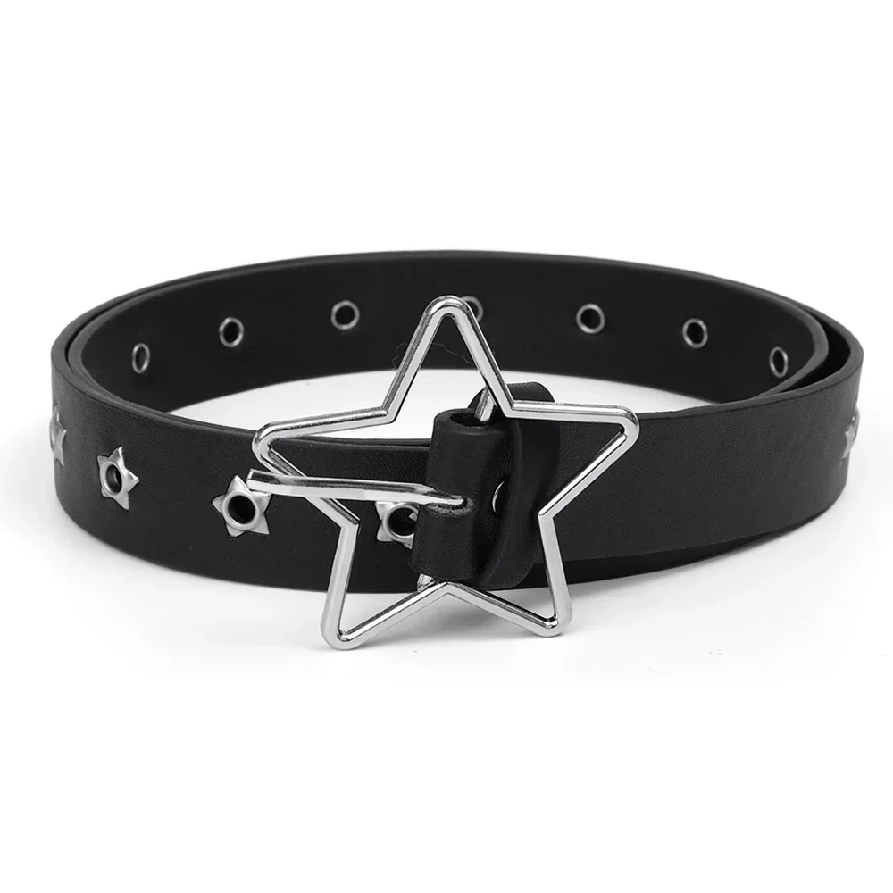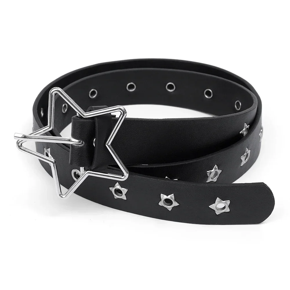 Star Eye Rivet Belt Goth Style Double Pin Buckle Man/woman Fashion Casual Punk Style Pu Leather Waistband for Jeans Y2K Belt