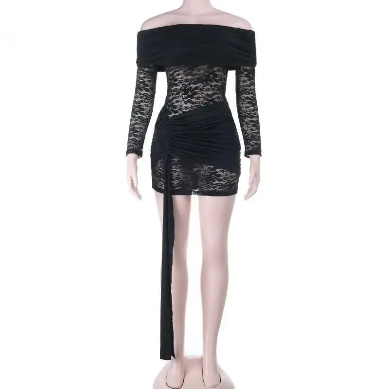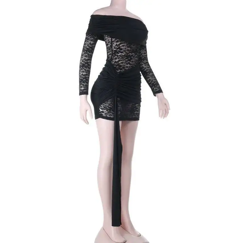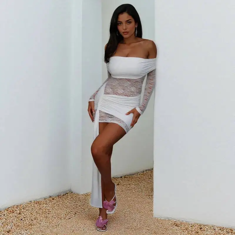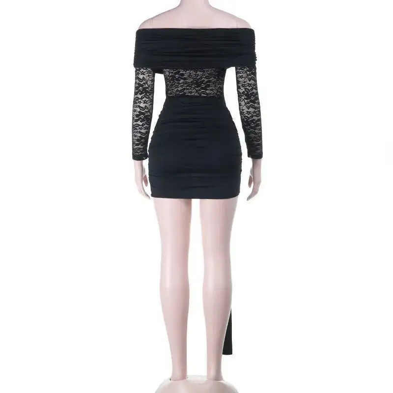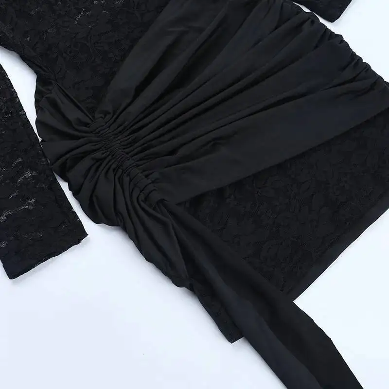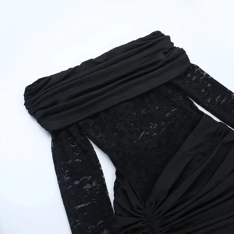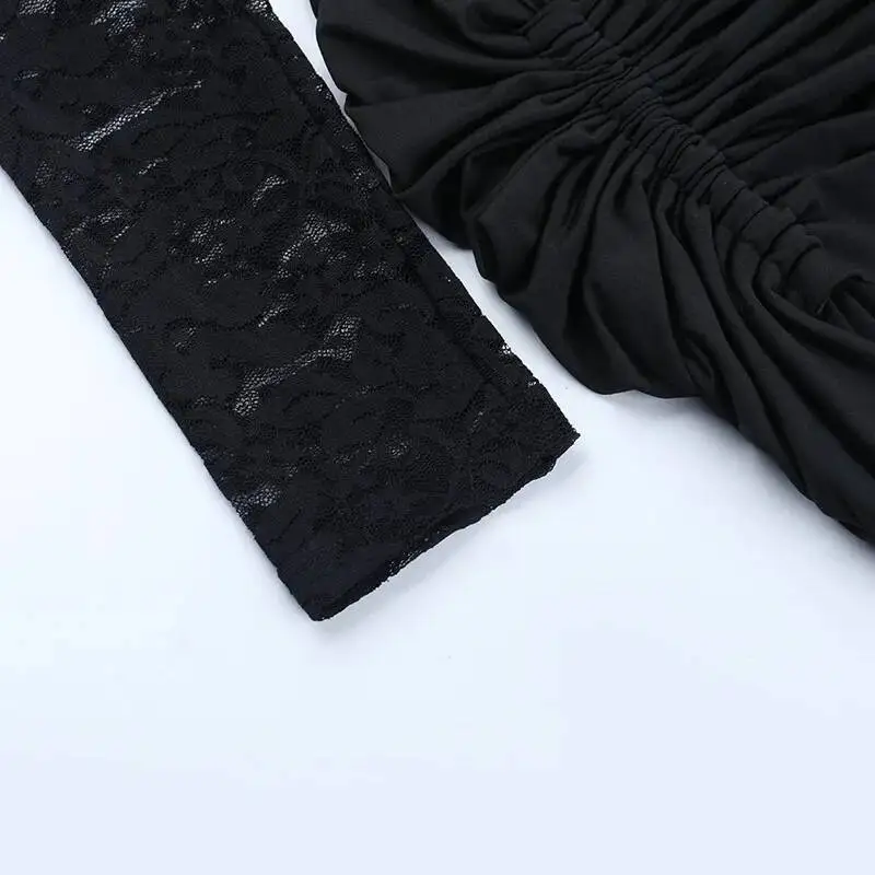 Townlike Pleated Slim Bodycon Dress Women Off Shoulder Mini 2025 Summer Dress Lace Patchwork Nightclub Sexy Party Dresses