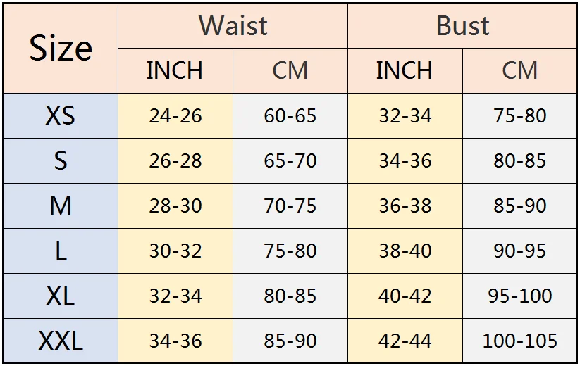4.Corsets are sized by waist size, so please choose your corset according to your waistline, not your bust. Our corsets will fit any body shape