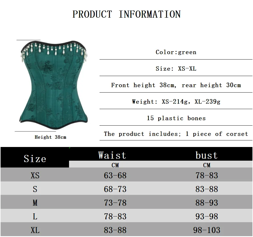 4.Corsets are sized by waist size, so please choose your corset according to your waistline, not your bust. Our Overbust corsets will fit any body shape