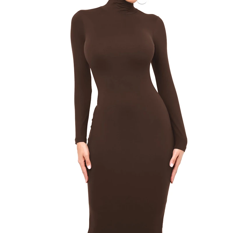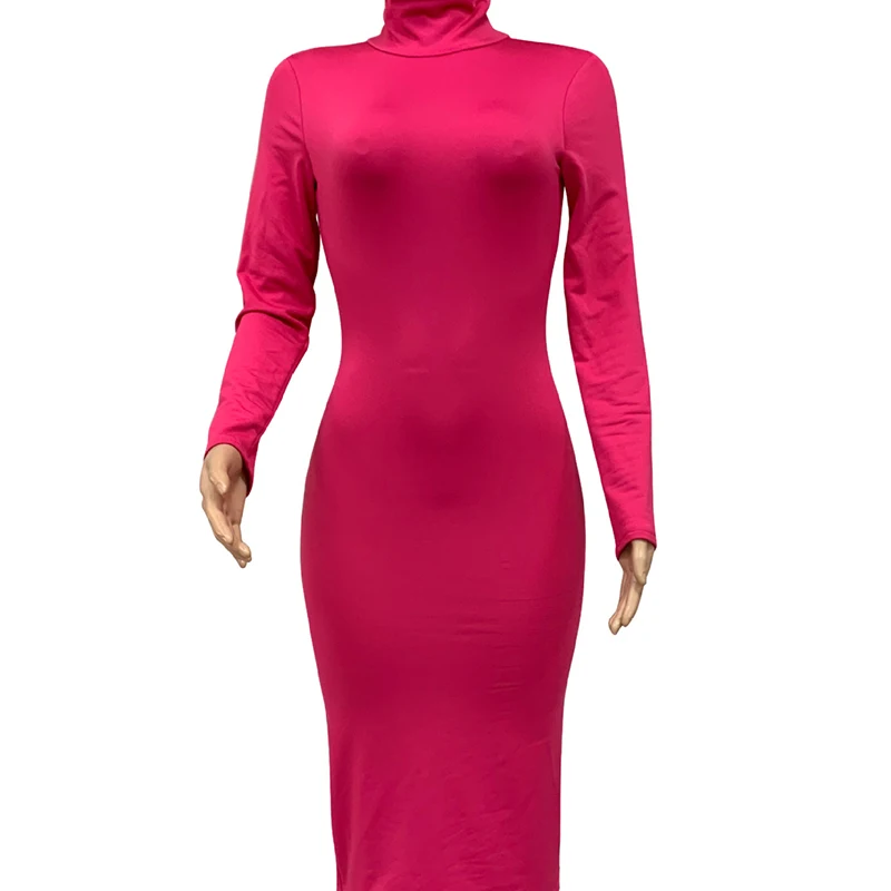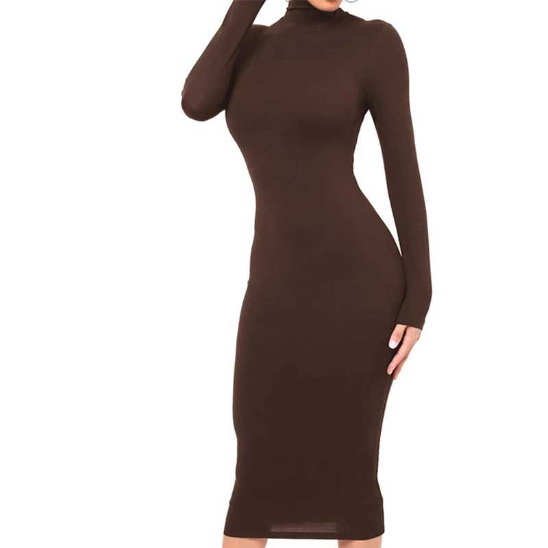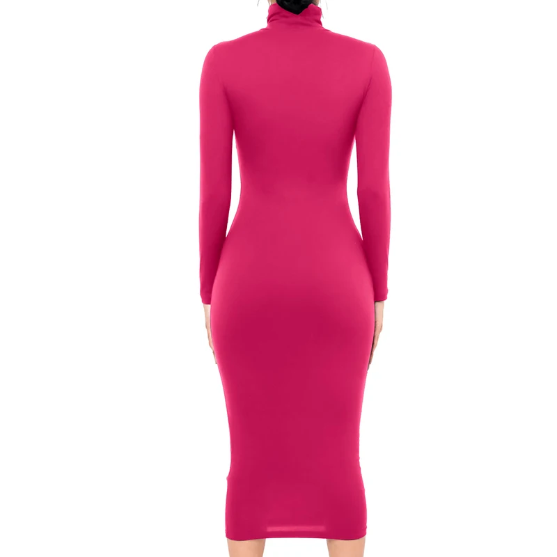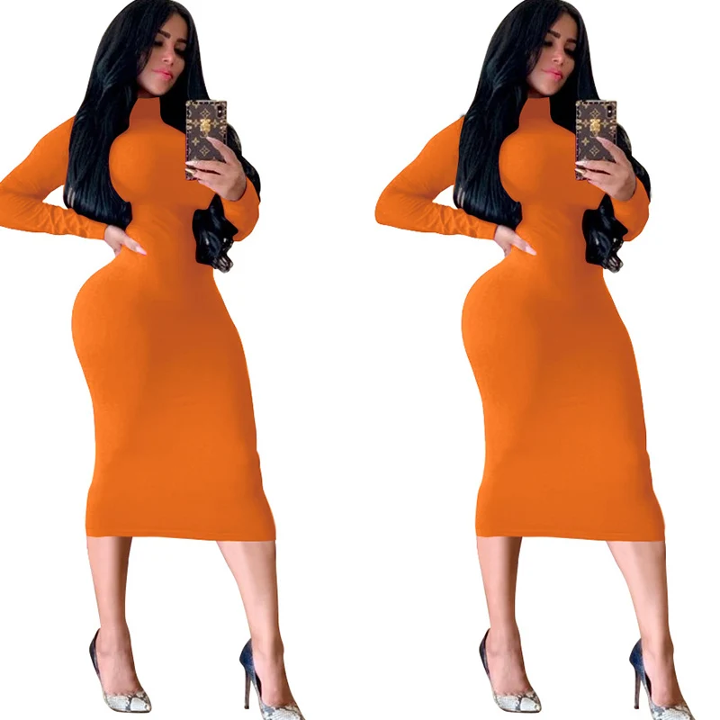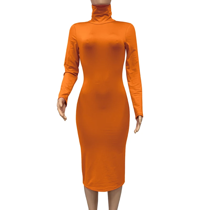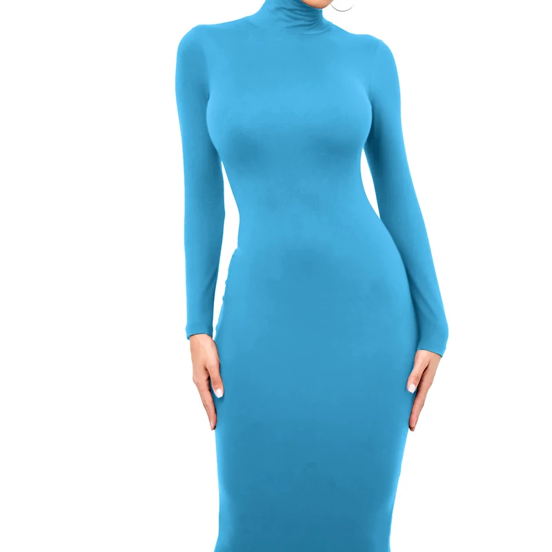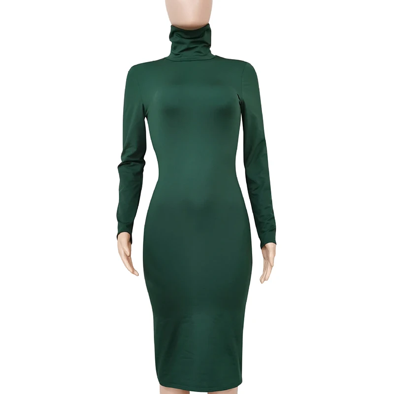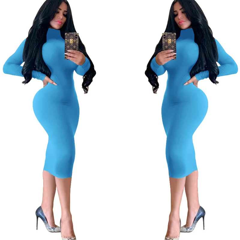 Winter Black Turtleneck Sexy Women Dress Autumn Long Sleeve Skinny Midi Boydcon Casual Blue Plush Knee-Length Party Club