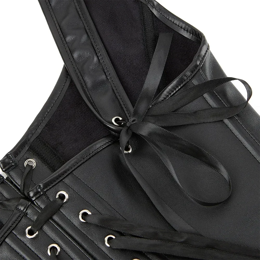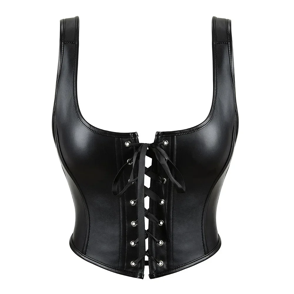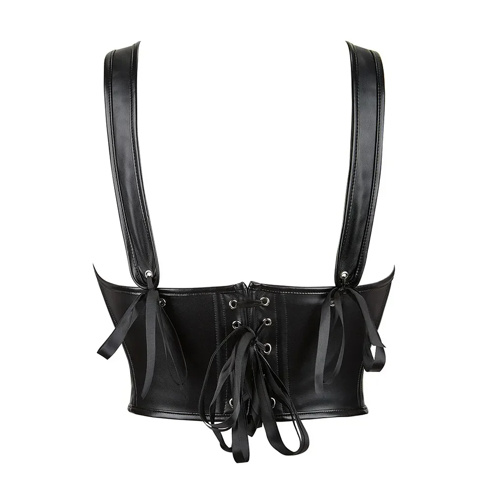 Women Faux Leather Corset Crop Top Gothic Lace Up Overbust Corset Bustier Bra with Straps Fashion Streetwear Vest