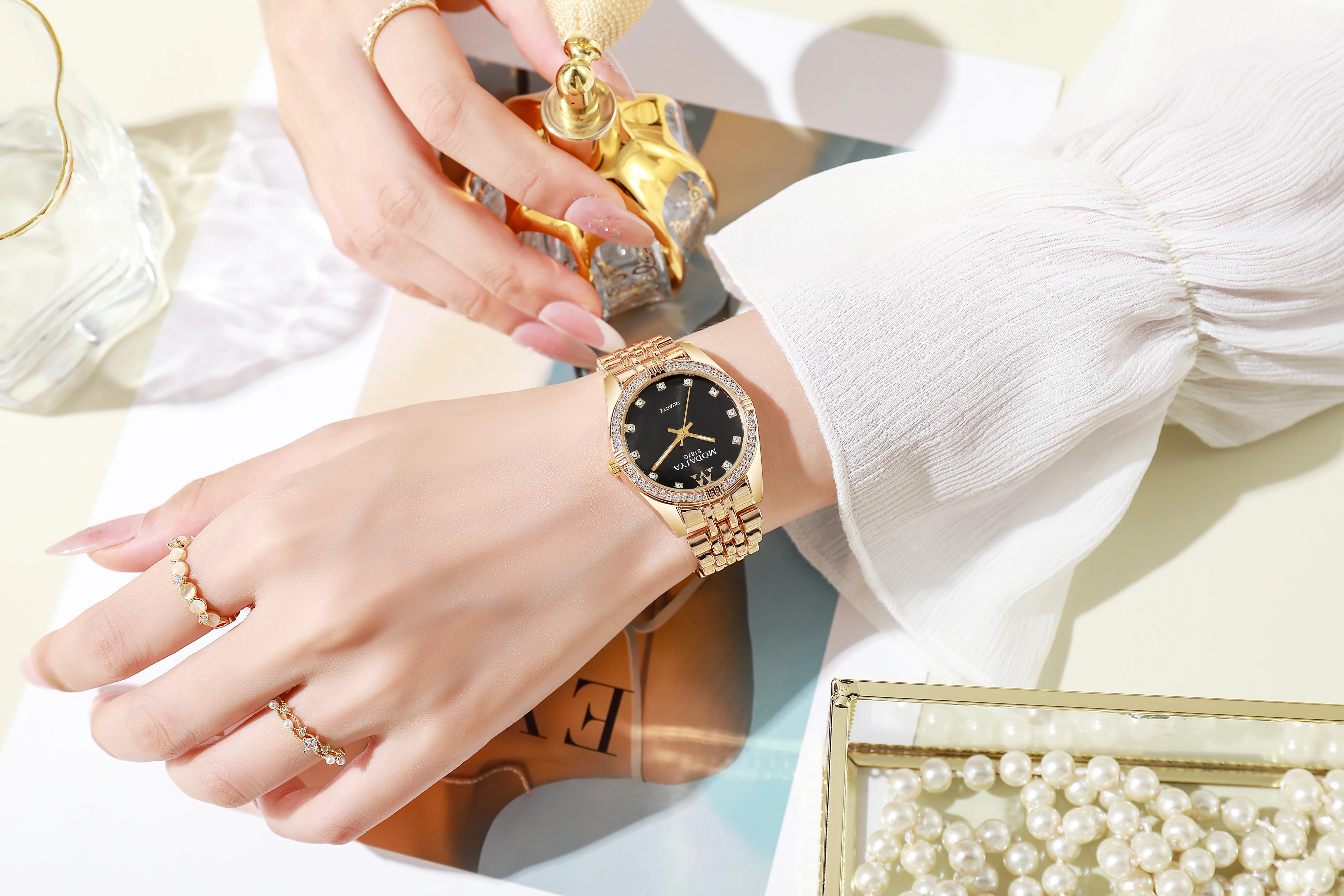 Women Watches Luxurious Quartz Sparkling Rhinestone Dial Dress Wristwatches for Ladies Relogio Feminino