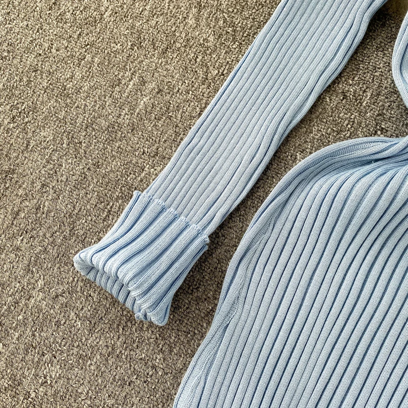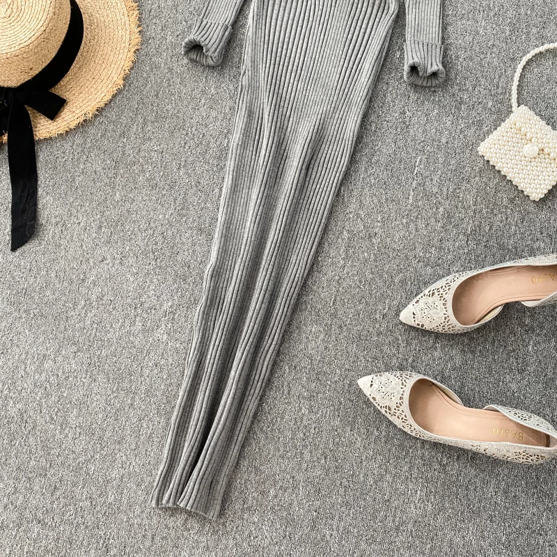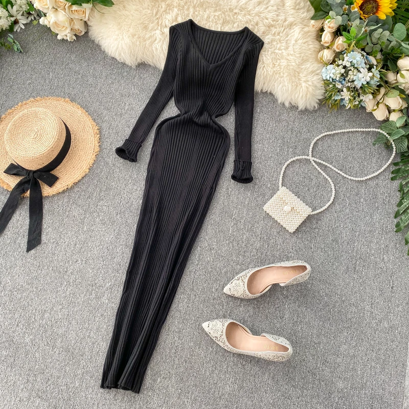 Women's Knitted Midi Dr Pure Color Long Sve Slim Fit High Waist V-Ne Korean Sle Faionable Autumn Winter Dr
